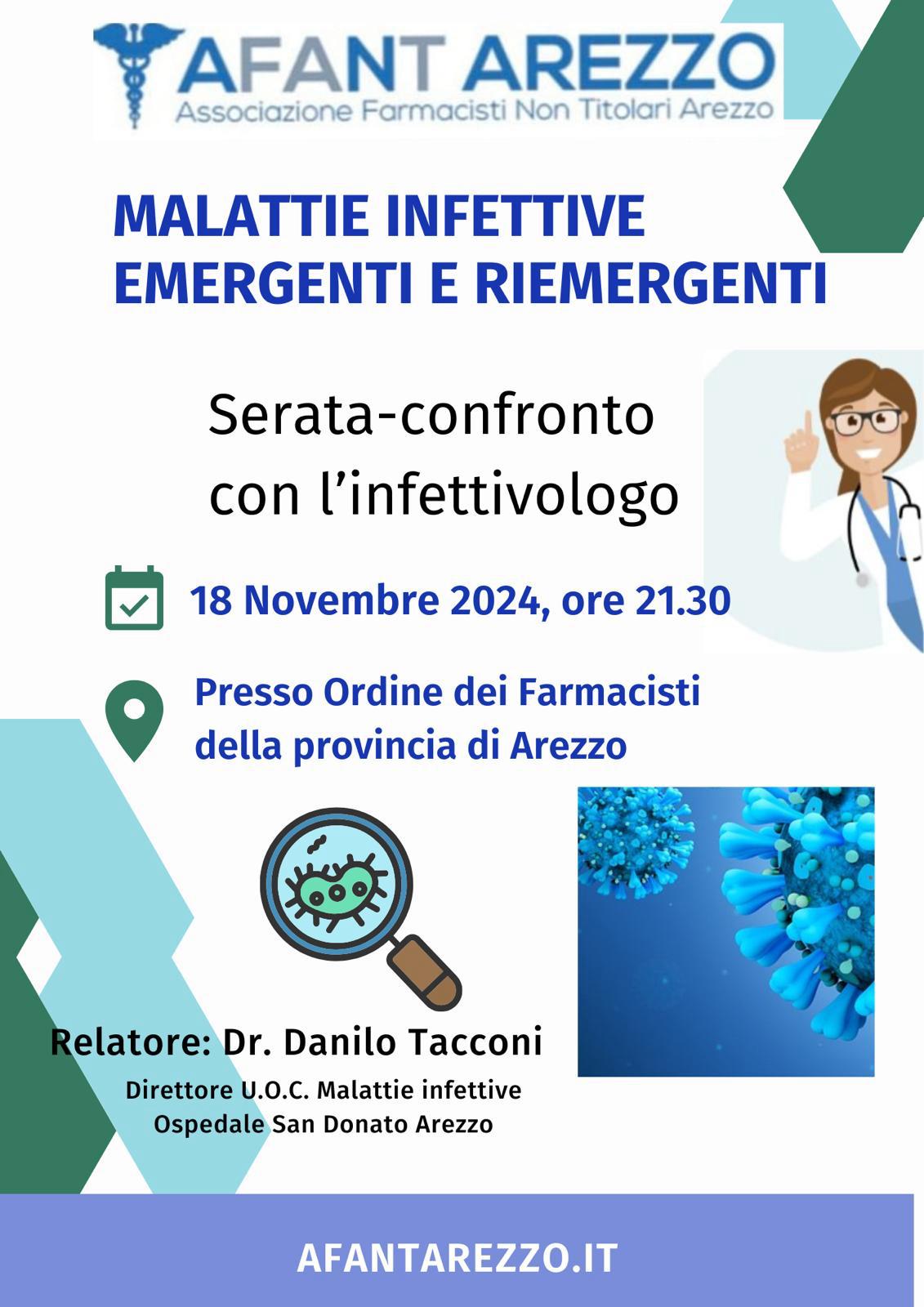 18 Novembre 2024 – Serata confronto con l’infettivologo presso ordine dei farmacisti della provincia di Arezzo